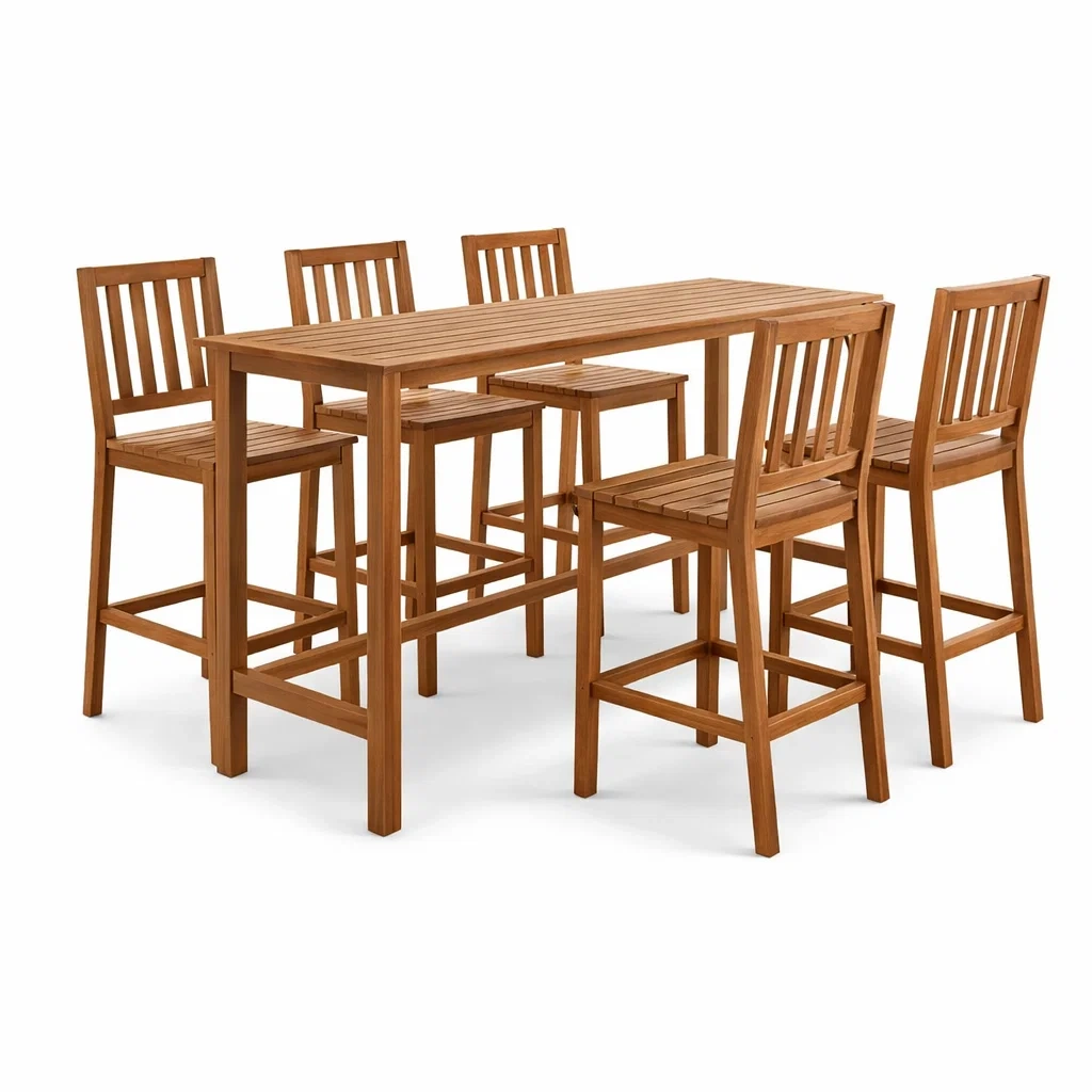 Ensemble de bar en bois d’acacia avec table et chaises