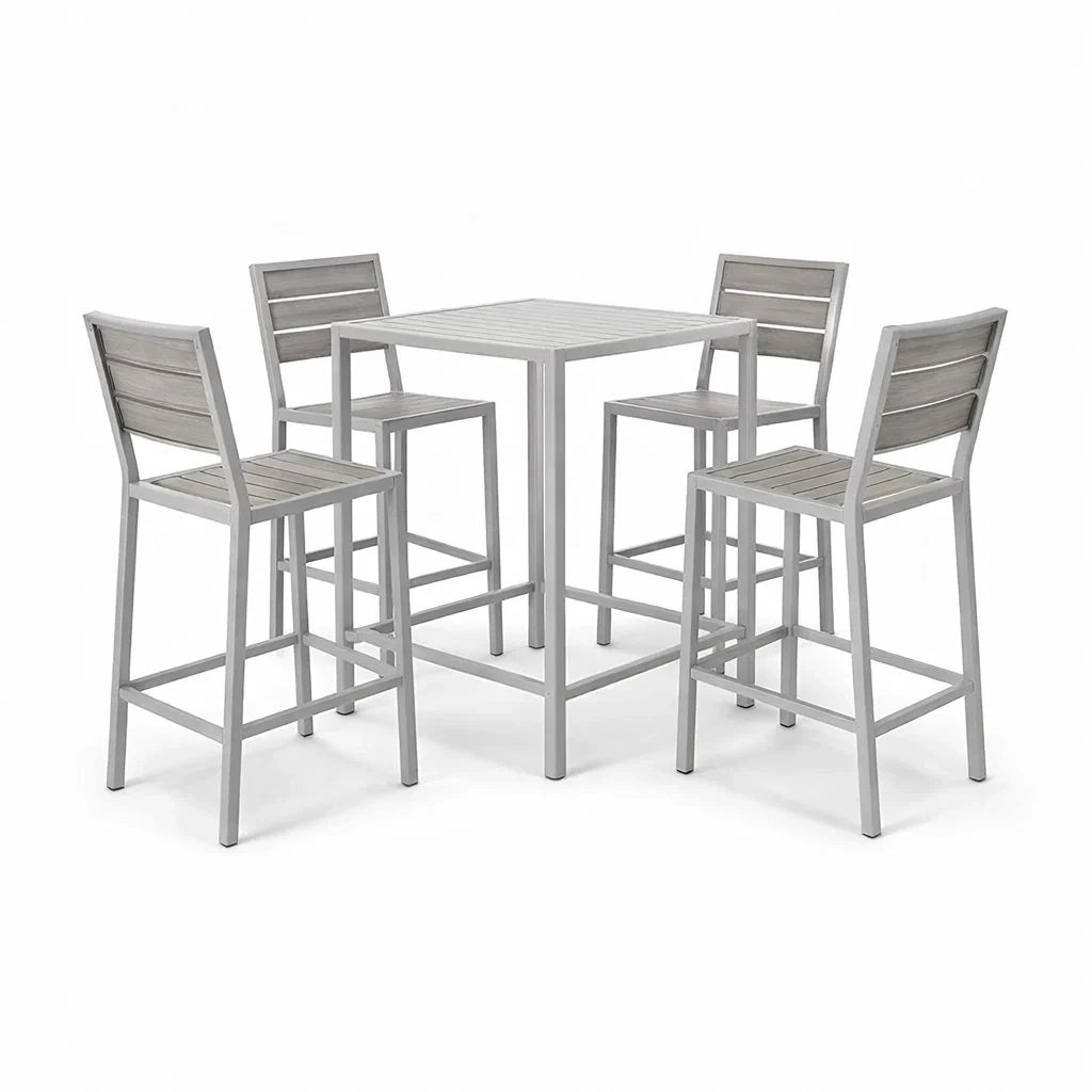 Ensemble de bar en aluminium gris avec table haute et chaises