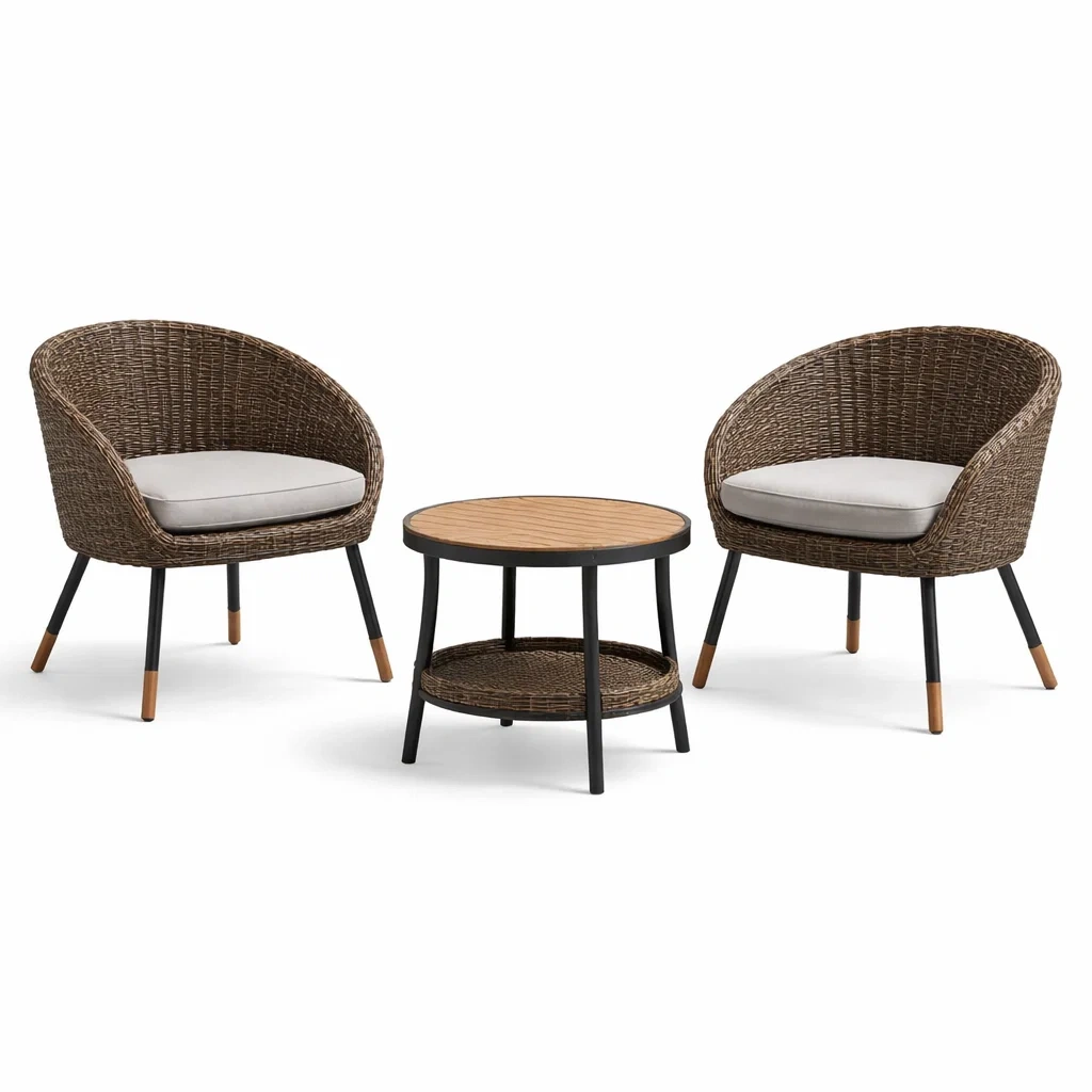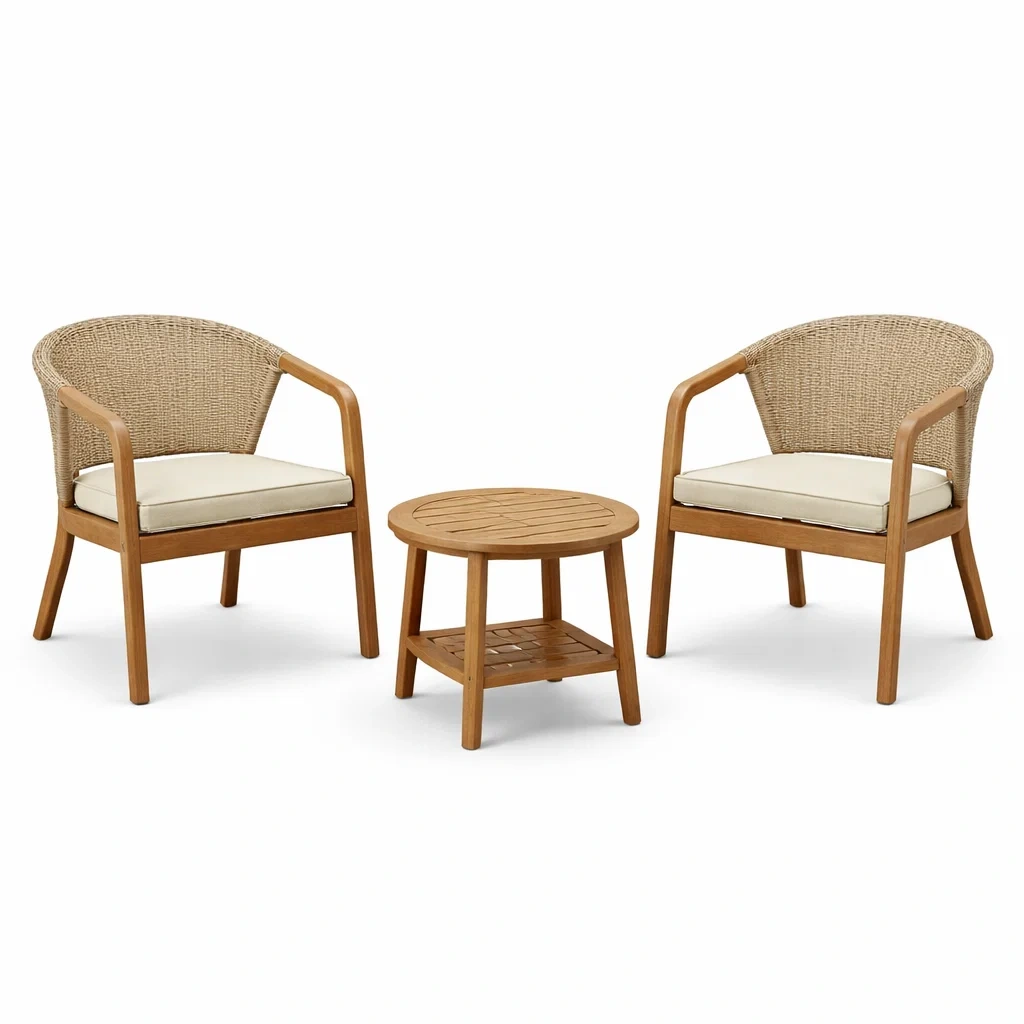 Ensemble de détente d’extérieur en bois d’acacia et rotin synthétique