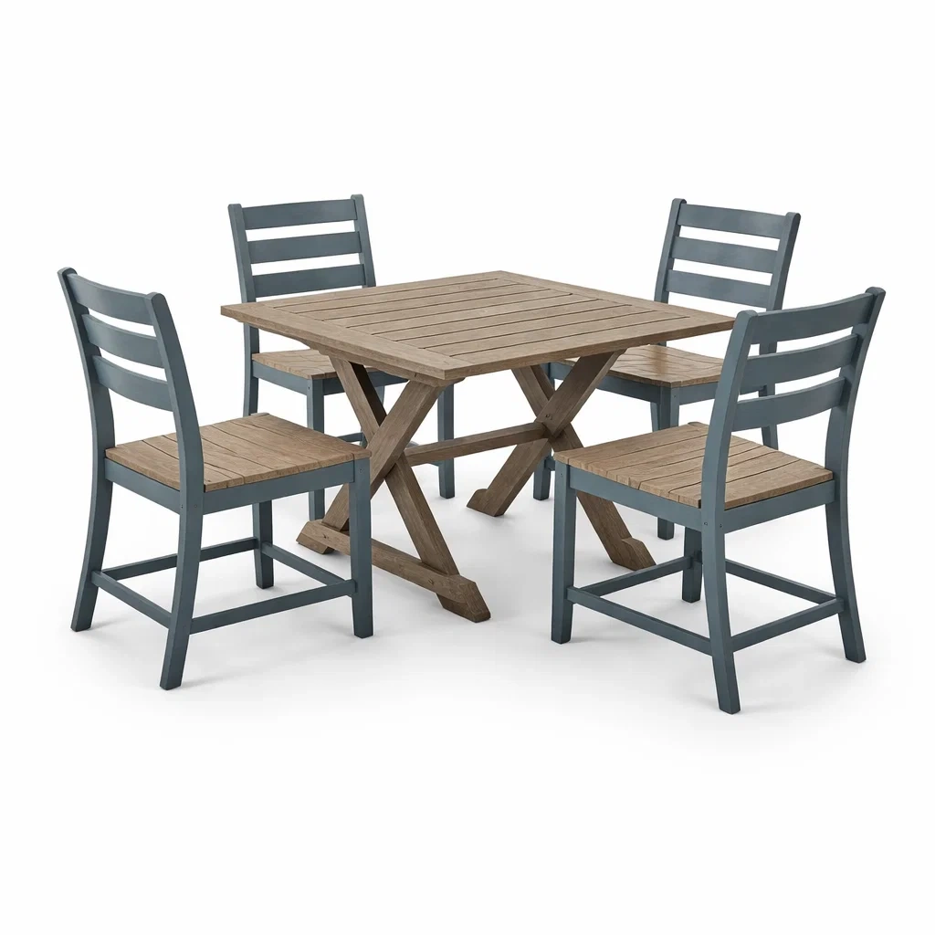 Ensemble table et chaises en bois et métal peint bleu et gris