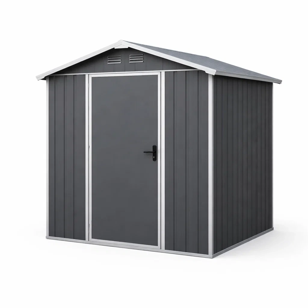 Structure : Panneaux en acier avec toit incliné pour évacuation de l'eau