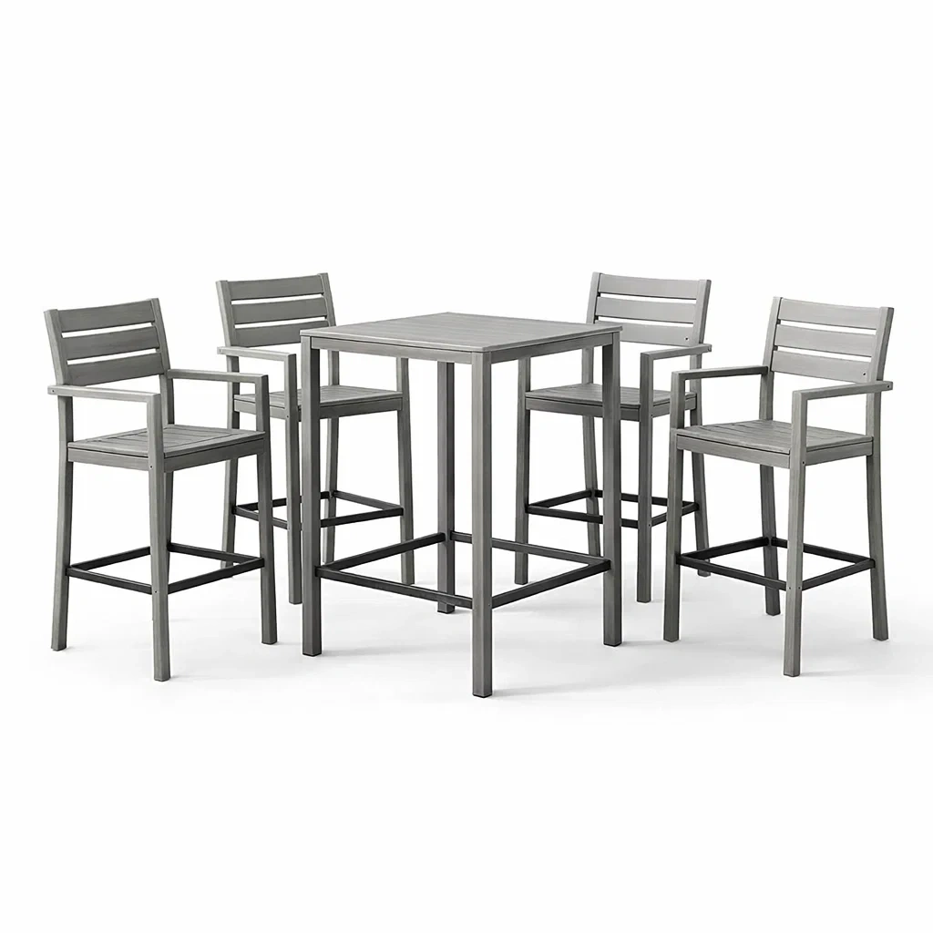 Matériau : Acacia pour le plateau et les assises, acier pour la structure.