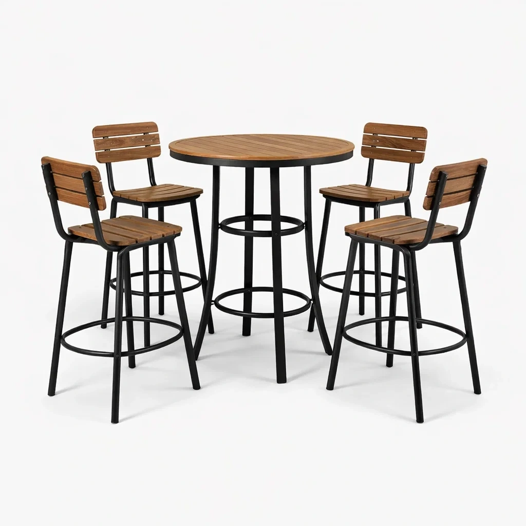- Tabourets : assise en bois d'acacia, cadre en acier