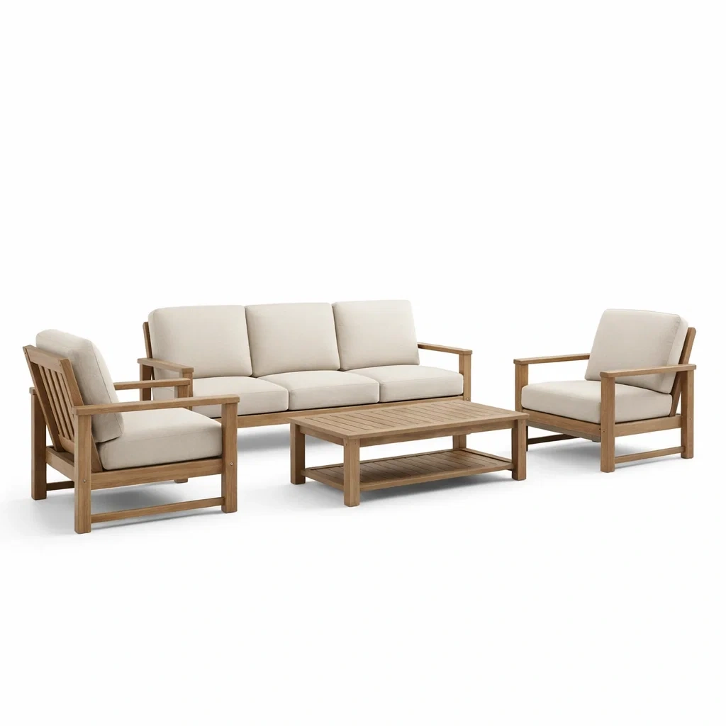 Contenu du produit: 1 canapé 3 places, 2 fauteuils, 1 table basse, coussins inclus.