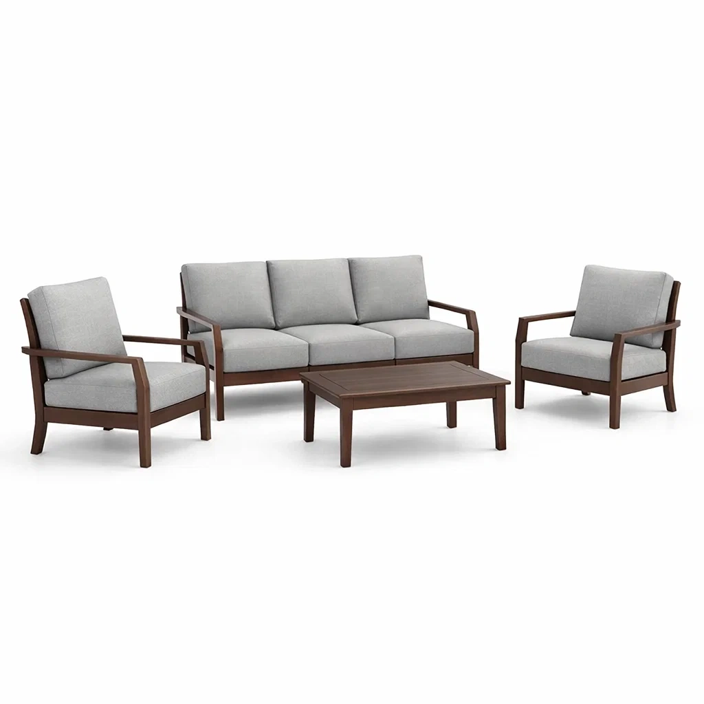 Ensemble de canapés d’extérieur en bois avec coussins en tissu gris