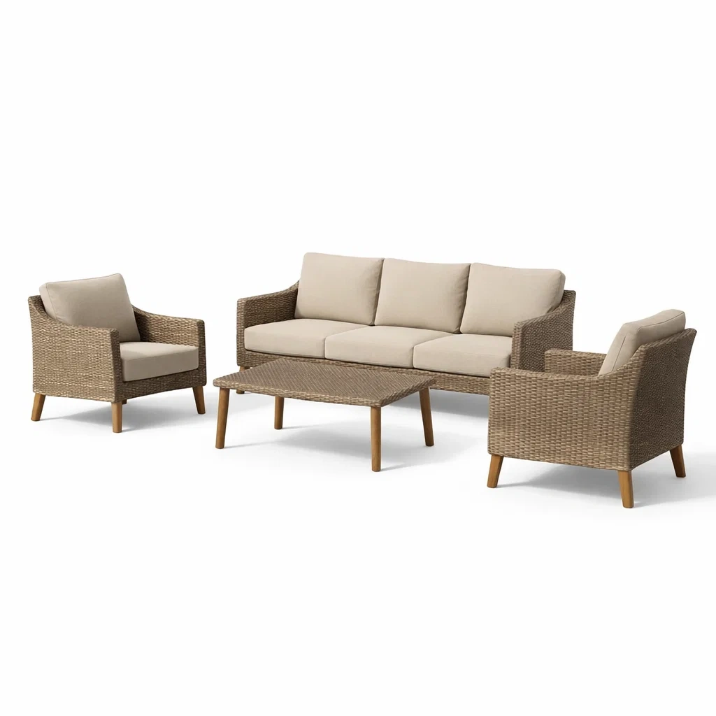 Ensemble de canapés d’extérieur en rotin synthétique beige avec table basse
