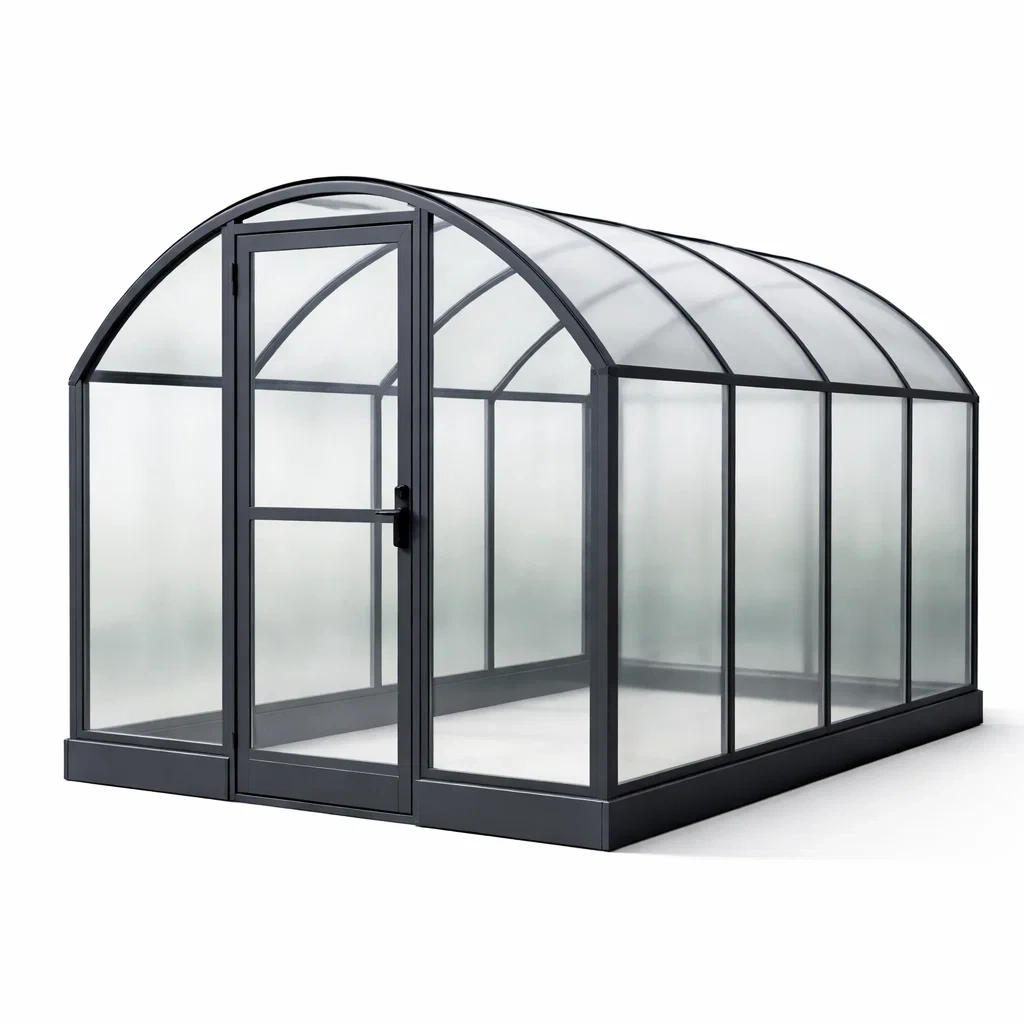 Structure en aluminium avec parois en polycarbonate de 4 mm d'épaisseur.
